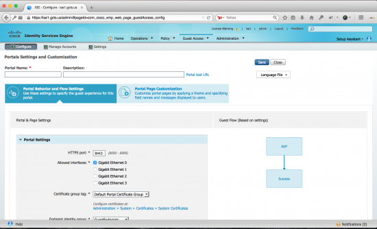 From here you define the behavior of your portal. The look and feel is similar to what ISE looked like in the past, but minus the flow graphic. You can also see to the right of the description that there is a new portal test feature.