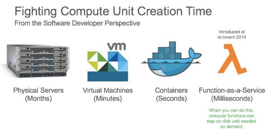 The best way to understand the difference is with a history lesson. For 30 years, as an industry we've been pushing to try to shrink the amount of time it takes to provision a unit of compute.