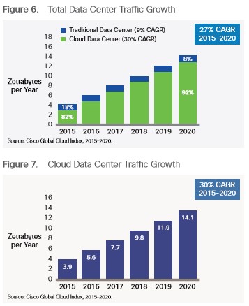 By 2020, Cisco's Global Cloud index predicts that almost half of traffic, or 44 percent, within data centers will be supported by SDN/NFV platforms as operators strive for greater efficiencies. SDN and NFV will help to flatten data center architectures and simplify traffic flows. Nearly 60 percent of global hyperscale data centers are expected to deploy SDN/NFV solutions.