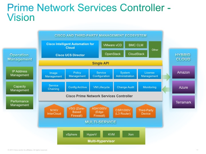 A key software component for each of these solutions is our control point for network services deployment, with template-oriented policy management. That control point and management interface is Cisco Prime Network Services Controller (formerly VNMC).