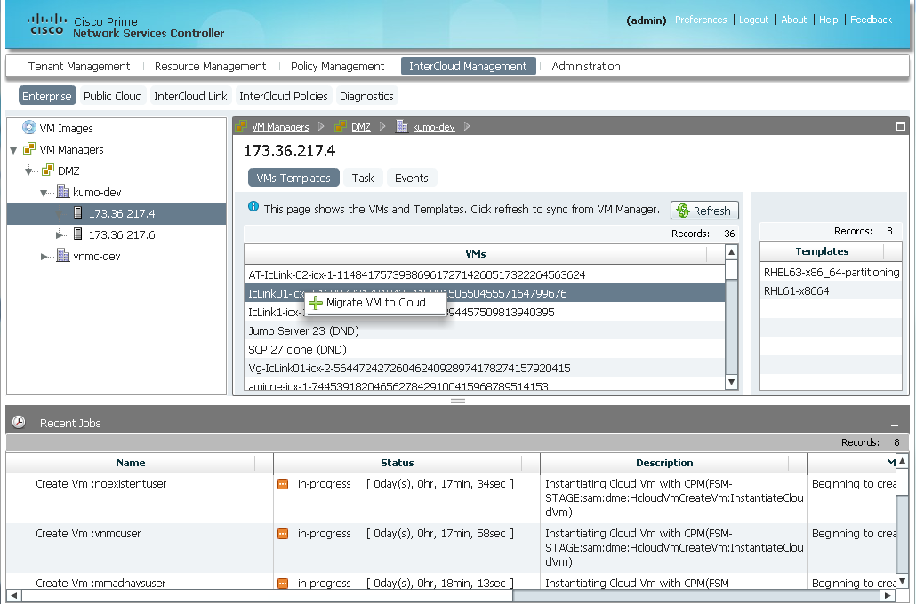 The screenshots below illustrate how InterCloud enables the secure migration of a VM to a public cloud environment: