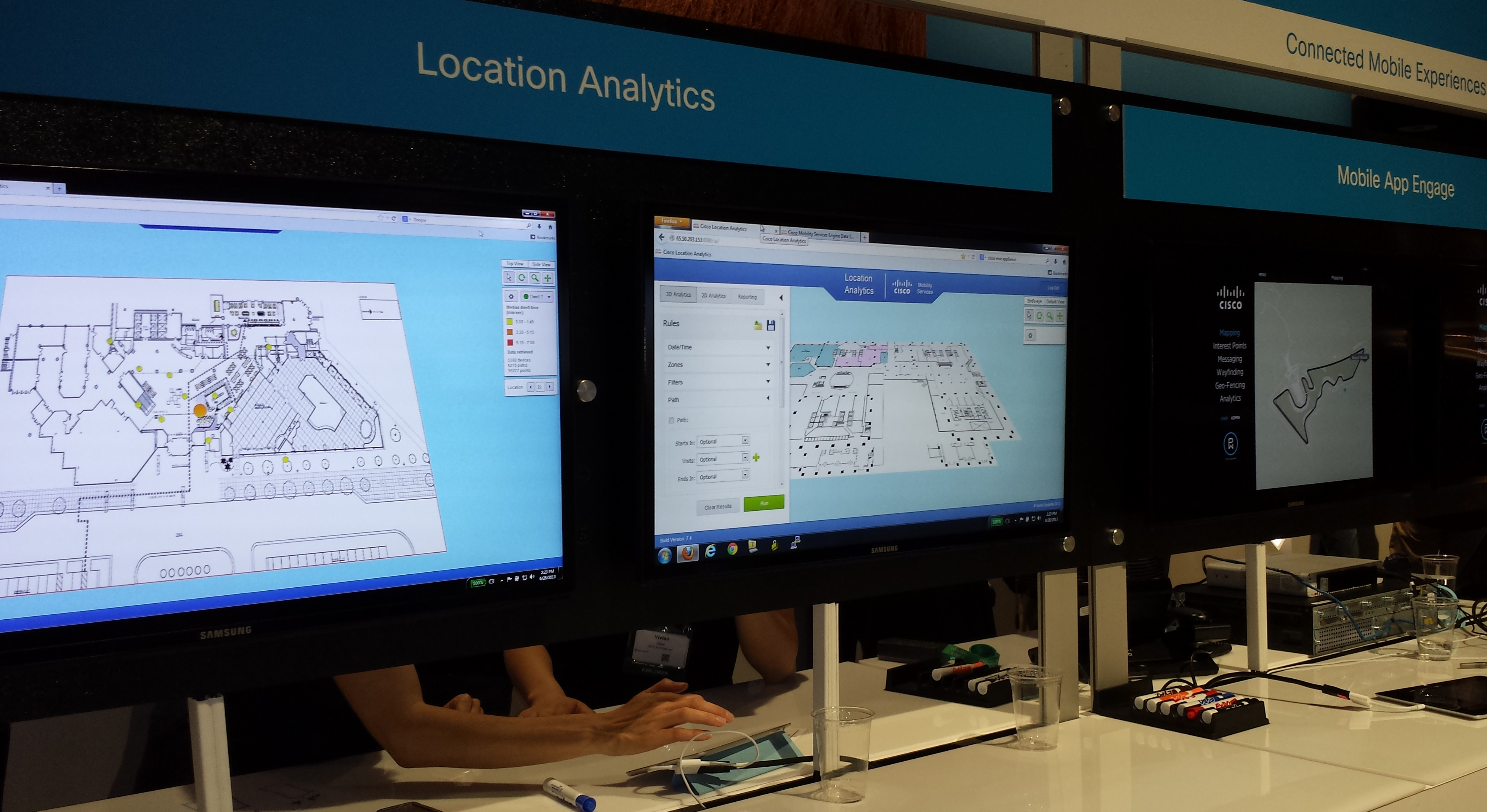 Also at Cisco Live 2013 the wold of solutions theatre featured CMX in a number of forms. The location based analytics was demonstrated both from a retail and hospitality persecutive showing the value and insight that this brings to the industry, in addition we provided a sneak preview of our up coming CMX Browser Engage features where location based services can be delivered directly onto the browser.