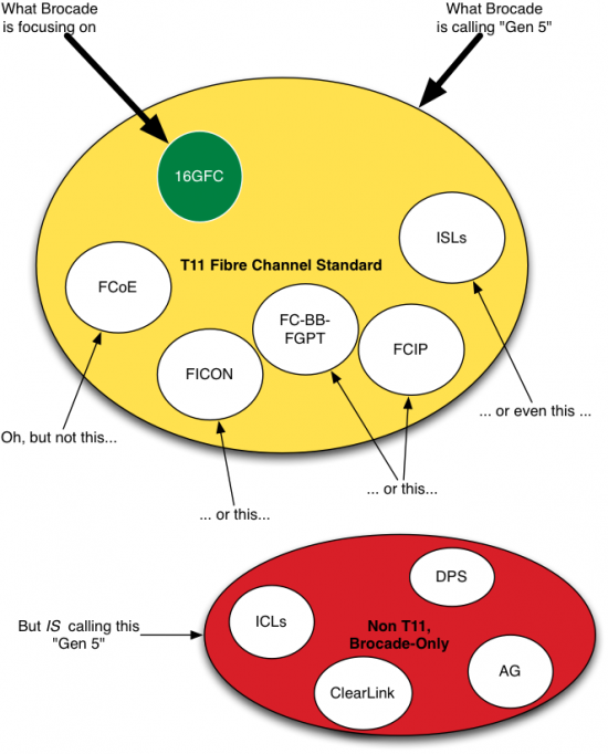 I've been somewhat amused by Brocade's recent "Gen 5" Fibre Channel campaign. After all, the idea that "we're going to simply call 16G Fibre Channel something other than 16G Fibre Channel and pretend that people will not figure out that it's really just 16G Fibre Channel" is, well, amusing!