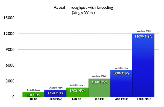 I mean, I've talked about this before, comparing the throughput of FCoE as we get into higher bandwidth speeds, and it's hard not to sit up and take notice that there are reasonable comparisons to be made -especially when you take into consideration that most storage networking environments do not saturate classical 8G Fibre Channel lanes.