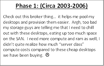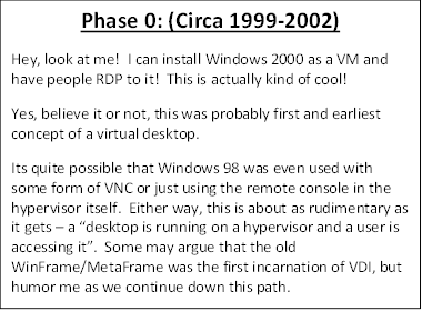 The model in which we used to sell, design and deliver VDI was based on the environment that it was formed around. We are moving beyond the "just get it to work" phase and are getting set to face the next challenge -General purpose GPU users. To set the stage, lets take a look at some of the evolution of VDI (along with our VDI Administrator) and the technology that has fostered its growth.