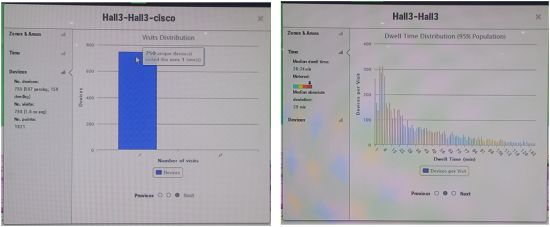 Here we can see that within the Cisco booth alone, 750 unique devices were seen before 11.30am, with an average dwell time of just over 26 minutes. This mirrors the feeling on the ground the the event started slowly this morning and got really busy from 10 am onwards.