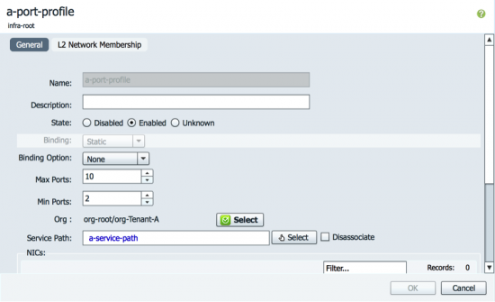Prime Network Services Controller allows provisioning of Nexus 1000V vPath based virtual services chaining (Service Path) and binding on the Nexus 1000V port-profile as shown below.