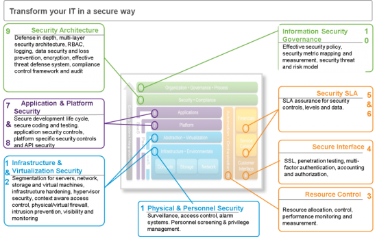 Security consistently tops CIO's list of cloud concerns. The security domain highlights identification of security and compliance requirements, along with an assessment of current vulnerabilities and deviations from security best practices for multisite, multitenant physical and virtual environments for one's IT transformation vision.