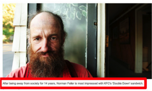 who went into a bunker for 14 years over the fears of the fallout from the Y2K virus. Mr. Feller emerged from his bunker absolutely sober and of sound mind. In fact, Mr. Feller had the wherewithal to visit his local KFC restaurant and be absolutely amazed by the innovation of KFC's "Double-Down" sandwich. The combination of putting together bacon, cheese and chicken fillets was earth..."bunker" shattering for Mr. Feller . Now, I'm not sure if this story is actually folklore or true, but I do know that people and societies have various emotional responses to technology trends, predictions and/or "hype"