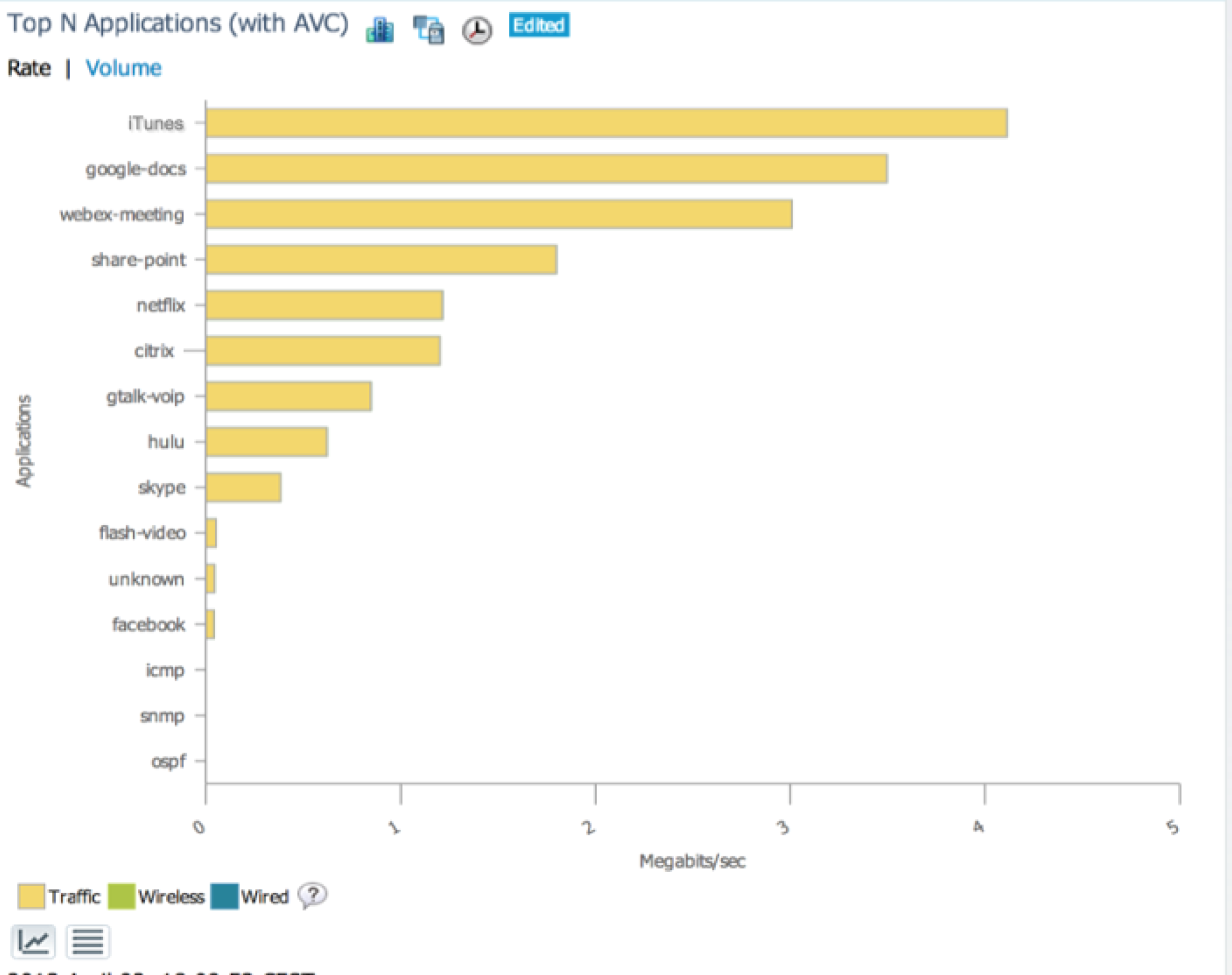 You can also see these applications through the WLAN controllers. iOS and app updates will look like this in the controllers' management reporting. They also use the same AVC technology and will be categorized as 'iTunes'. For more information on how to get your wireless network ready for iOS7, read this blog post.