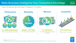 Today is a big day and a turning point in the server world with Cisco's partner Intel launching a new line of Intel® Xeon® processor E7 v2 product family cpus. These new processors offer numerous benefits over their predecessors summarized in the next slide. In addition, the Cisco UCS instantiation of these processors provides unique cost saving benefits.