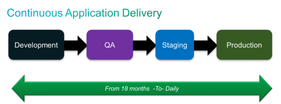 DevOps evolved from the need of global enterprises to meet competitive application demands with "continuous application delivery." Financial services, Healthcare, Hospitality and Retail are among the sectors for whom the frequency of application changes have shrunk from 18 months, to daily and even multiple times a day!