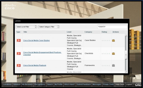 Over the past few months, we have been working furiously on making this dream become a reality. While we have a little longer to go before you can test drive our new social media training center, we want to share some screen shots of this new environment. Besides individual learning, participants will be able to create their own network, join communities, get live updates from the socialsphere and jump into conversations with fellow students. We are currently beta testing it with a few people (many thanks to them for volunteering their time!) and if everything checks out, we are looking to pilot the center in or around January 2014. Stay tuned for more information.