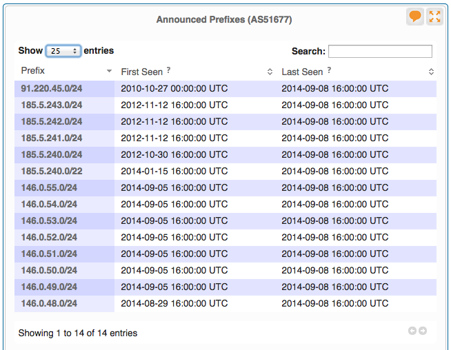 Here are all the network prefixes announced by Logfont Ltd's AS51677.
