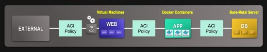 Cisco Application Centric Infrastructure (ACI) offers a common policy model for managing IT applications across the entire Data Center infrastructure. ACI is agnostic to the form-factors on which applications are deployed. ACI supports bare-metal servers, Virtual machines and containers, and its native portability makes it a natural fit with Containers. Besides, ACI's unified policy language offers customers a consistent security model regardless of how the application is deployed. With ACI, workloads running in existing bare-metal and VM environments can seamlessly integrate and/or migrate to a Container environment.