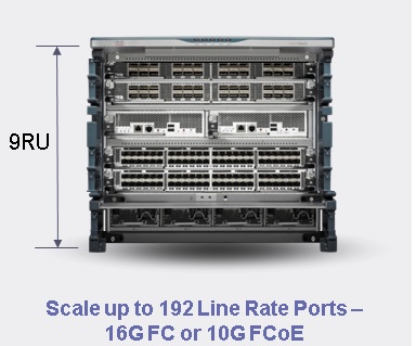 Why you should consider the MDS 9706 for your next SAN? It is a compact 9 rack-unit form factor switch, ideal to save valuable data center floor space. It has industry-leading port densities of up to 192 16-Gbps autosensing line-rate Fibre Channel or 10-Gbps FCoE ports per chassis. It provides 3 times the performance of any compact director in the industry and is also the most reliable compact director with built in fabric, power grid, and supervisor redundancy. If you are planning to deploy pod architectures for cloud and virtual datacenters, where floor space is premium and need the high performance, scalability and flexibility of Industry leading MDS 9700 series then consider MDS 9706.