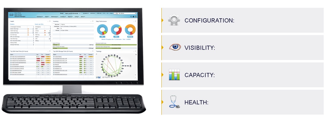 Cisco also introduced new innovative features to manage end to end datacenters. Cisco Data Center Network Manager (DCNM) raised the bar of SAN and LAN management by providing extensive visibility, monitoring and proactive trouble shooting capabilities across multiple domains and multiple protocols. DCNM new extensive monitoring and visibility features includes End-to-end visibility, SAN Host Path Redundancy, Switch Health Score check