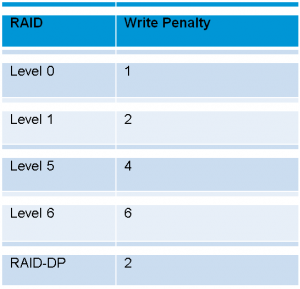 From this example you can correlate to the others write penalties. In the case of RAID-DP, they use an NVRAM at the controllers where they do all the calculations and write changes at predefined intervals.