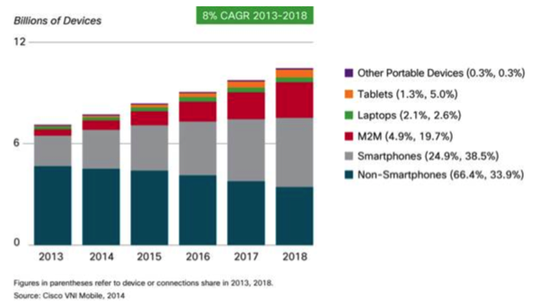To think that the number of connected devices will grow to possibly 10 billion by 2018 with some forecasts as high as 40 billion connected devices by 2020, that is mindboggling. That means that there will be about 10 connected devices for every man, woman and child on the planet.