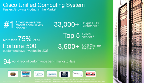 - "...Unlike other server vendors, Cisco's UCS launch was from a fresh-fields approach that recognized the industry's shift towards server virtualization and consolidation. Not tied down by legacy architectures..." -Cisco UCS -Undisputed Computing Success, March 2012, ZD Net, Archie Hendryx