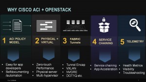 The last video covers the benefits of ACI with OpenStack. In this Video Lucien describes the workflow between ACI and OpenStack. You will learn the benefits of ACI with OpenStack including the ACI policy model, physical and virtual environment integration, hardware tunnels, service chaining and telemetry such as health scores, troubleshooting and visibility.