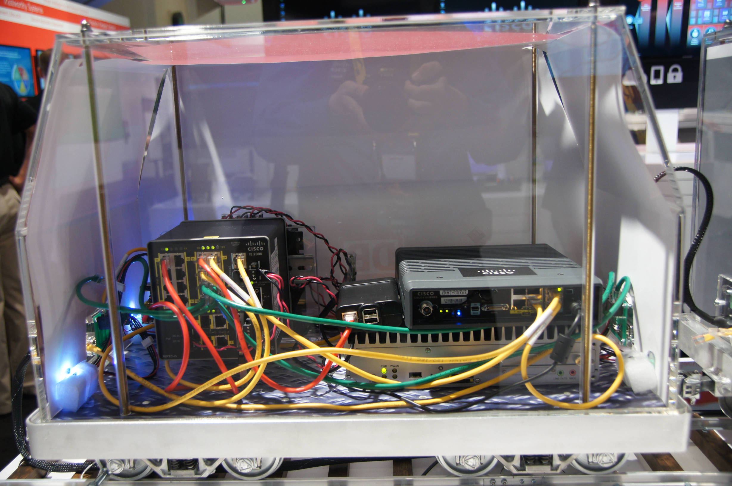 At Cisco Live, the train includes our Cisco IE2000 industrial switches (IP67 and non IP67 versions), Cisco-819 M2M router, our target application hosting server-PC with VSMS and an even smaller application hosting server -a Raspberry PI.