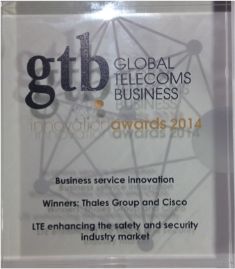 The Global Telecom Business Summit and Innovation Awards is an annual event that celebrates innovative solutions created by telecom vendors together with operators to make a difference to the world. Cisco and Thales won the award for Business Service Innovation for "LTE Enhancing the Safety and Security Industry Market" where we leveraged Cisco's Industry Leading LTE Solution and Thales' industry leadership in Security Systems Integration.