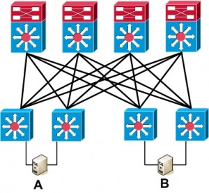 If you take a sharp look at FabricPath, DFA, and ACI, as in some of my prior blogs, we see overlays being used in conjunction with edge or leaf switch forwarding tables. The common element is a routed overlay forwarding traffic between the edge switches. The focus has shifted from the FabricPath overlay mapping MAC address to FabricPath edge device as routed tunnel destination,, to forwarding within a VRF, to policy-based forwarding. The overlay technology also changed somewhat in each iteration. The topology design is rather similar, with some subtle changes evolving L2 distribution / access to Spine / Leaf CLOS tree. (See also my Practical SDN blogs.)