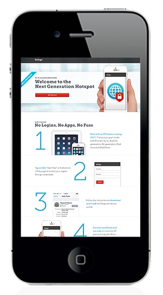The new networks eliminate the need for webpage redirects, login screens and apps for users on Passpoint-capable devices with a Passpoint profile installed. Once a profile is installed, users' devices will simply connect in the blink of an eye, allowing busy travelers to get their content, fast and hassle-free. Boingo launched a consumer-friendly site to educate subscribers about Next Generation Hotspot and allow them to download their Passpoint profile with one quick step. Already, thousands of Boingo customers have connected to one of our Passpoint-enabled airports.
