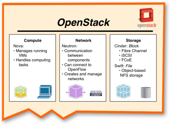 "Glad you asked," he said, smiling. "It makes sense that you would probably hear about Cinder first, as it's the part of OpenStack that deals with iSCSI, Fibre Channel, and also Fibre Channel over Ethernet."