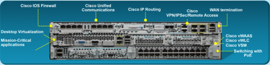 The Cisco Integrated Service Router 29xx Series and above have a slot for 1 or 2 UCS E-Series Blades. With this opportunity, you can consolidate an all-in-one device for branch services into a single box