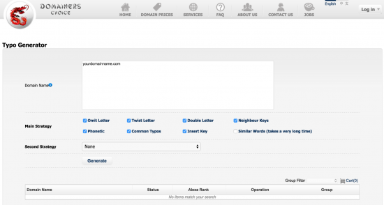 In fact visiting the domainerschoice.com website reveals a special tool which appears to be created specifically for the purpose of identifying typosquats for domain registration.