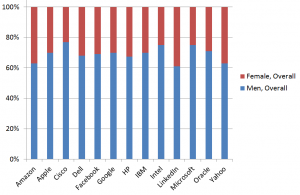 Information Technology is notorious for being one of the most male dominated sectors and has been since the field's beginnings. Despite many attempts to attract more women into the technology world (for example, Apple and Facebook offer to freeze eggs for female employees, Microsoft supports girls aged 13 years and above to attend their DigiGirlz High Tech Camp program, and every year, Cisco participates in Girls in ICT day by inviting young females on our campuses to give them hands-on exposure to our latest technology), Silicon Valley's tech giants are still struggling, as the numbers show.