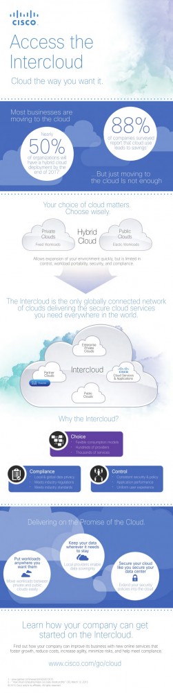 We believe the next wave of cloud innovation will come in the form of open, secure connectivity that drives a globally connected network of clouds-a model which we call the Intercloud. The Intercloud is a hybrid cloud model based on a mix of private, public and partner clouds that offers flexibility, security and policy management to CIOs. Our definition of hybrid cloud doesn't just mean connecting public clouds to private clouds. It also includes connecting to partner clouds as well. Since this model is open it also allows CIOs to move workloads between all these different clouds, versus locking them into using one single cloud environment as many public cloud companies do. With hybrid cloud models such as Cisco's Intercloud, organizations can enjoy both the level of control offered by on-premise private cloud solutions and the freedom to choose public clouds for other workloads.