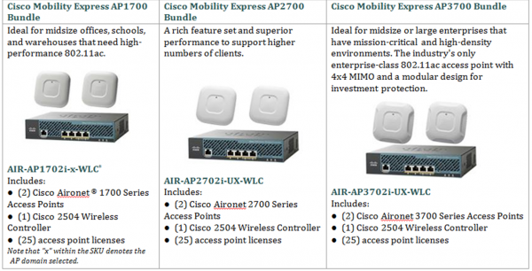 The Cisco Mobility Express Bundle comes in three different variants, designed for a variety of different network sizes and feature needs.