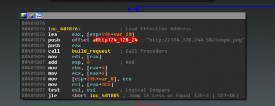 ), the initial malicious software attempts to grab the malicious PNG file via the following HTTP request -http://174.128.244.58:808/toopu.png.