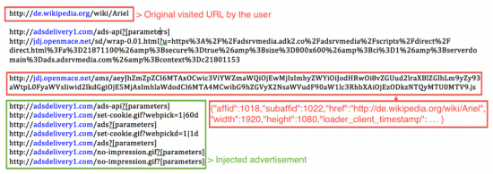 This particular threat chooses a very unobtrusive way of injecting ads, it installs itself as a browser add-on. This family of add-ons have some common behaviors that were tracked across various installs and had multiple trajectories. Cisco researchers uncovered over 4000 different names for these bundled add-ons. Once installed, the plugin monitors a user's browsing session, exfiltrates visited URLs using a distinct communication mechanism and injects advertisements into visited pages. To the user, it appears as if that advertisement is a natural part of the page.