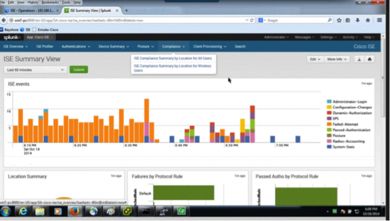 Splunk is a machine data platform that allows you to search, report, alert, and visualize any data that it ingests. Cisco ISE brings an added dimension to analyzing all this data; it attaches key contextual data (for example, username, location, network policy status) to events and data analyzed by Splunk. The Splunk for ISE app, a free download from Splunk, comes with a number of built-in dashboards to correlate this machine data with user information and create customizable dashboards and reports.