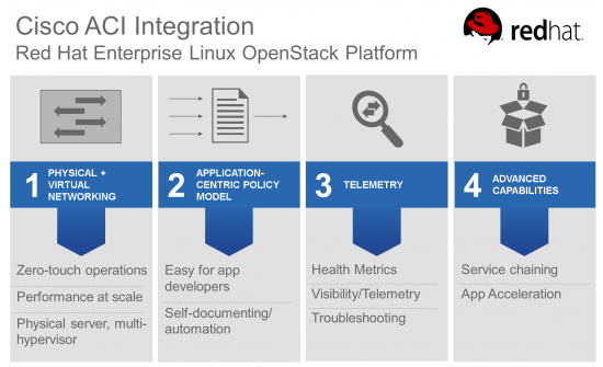 On January 13, 2015, Cisco will celebrate a year of industry adoption of Application Centric Infrastructure (ACI), a ground breaking SDN architecture. It will include a public webcast with ACI customers and ecosystem partners describing a range of new solutions that dramatically simplify data center and cloud deployments . One of these inaugural partners was Red Hat, the leading provider of open source solutions for enterprise IT . Since the ACI launch, Cisco and Red Hat have been working on extending the application policy model, at the heart of Application Centric Infrastructure, to OpenStack. Here is a preview of the Red Hat solution.