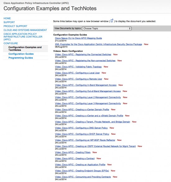 Cisco released APIC configuration examples and technotes... in videos! Some may prefer HTML or PDF format, but APIC GUI is a GUI! I want to see where to click and what to click.