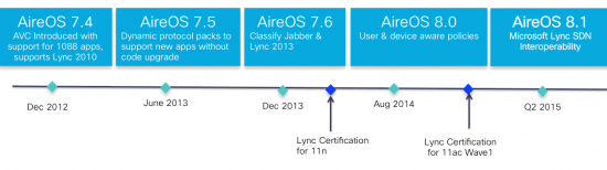 The above picture shows the timeline for various AVC, policy and Lync enhancements. The crucial updates since AireOS 7.6 are: