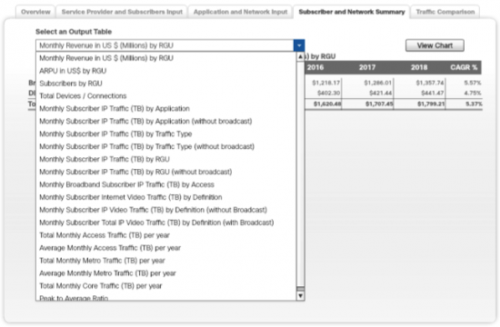3. Start reviewing/analyzing your customized subscriber and network projections.
