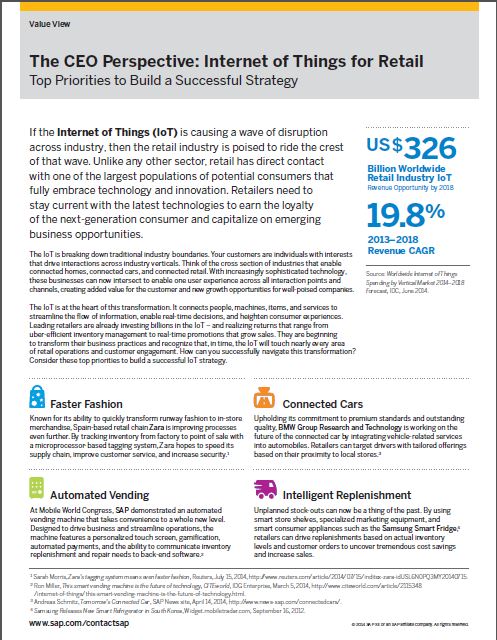 For more interesting facts and figures on how the C-Suite should prepare for this retail revolution download the latest in our CEO Perspective series on Internet of Things for Retail (click graphic):