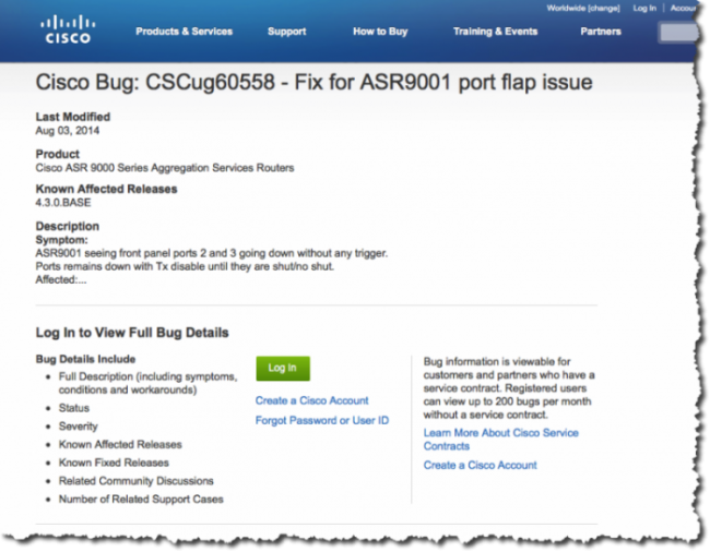 6: Our bug content is protected and requires users to log in to view the details. That means search engines can't crawl those pages and make them searchable. We know many people use Google to find Cisco content, so we've created "preview pages" that provide a summary description of the bug. This information can be crawled by search engines and it makes our bug information more findable.