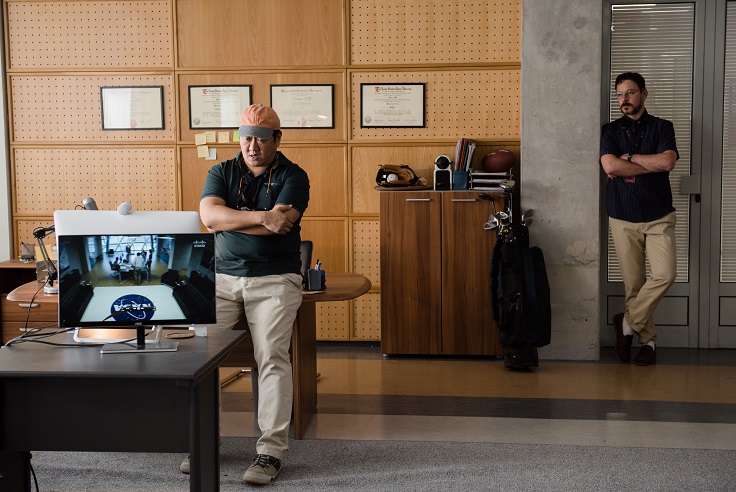 Cisco DX80 desktop collaboration system in call with with Kristin Wiig's character, Annie Montrose, at NASA HQ.