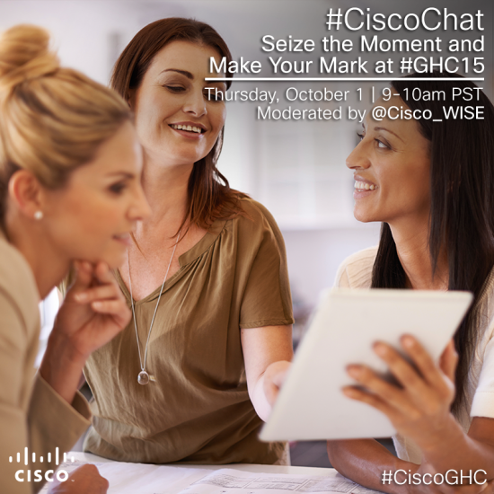 You won't want to miss this #CiscoChat on Twitter on Thursday, October 1st 9-10am PST using the hashtag #CiscoChat & #GHC15