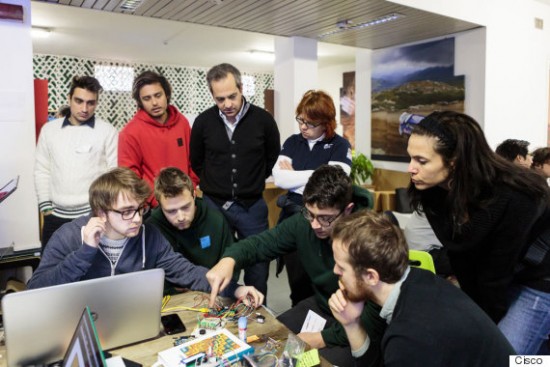 Students in Milan learning the importance of the Internet of Everything during their hands-on lessons in IT.