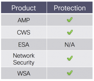 Advanced Malware Protection (AMP) is ideally suited to prevent the execution of the malware used by these threat actors.