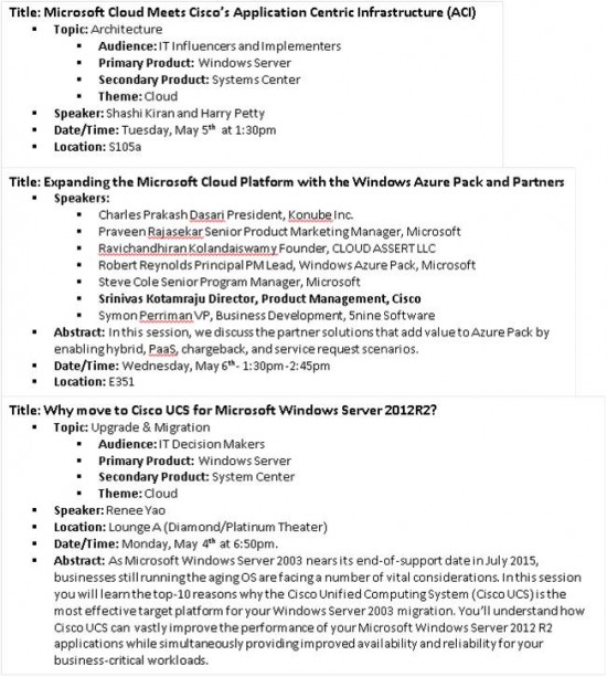 Cisco's Microsoft Ignite Speaking Sessions