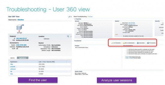 -troubleshoot user problems with Prime Infrastructure's User 360° View;